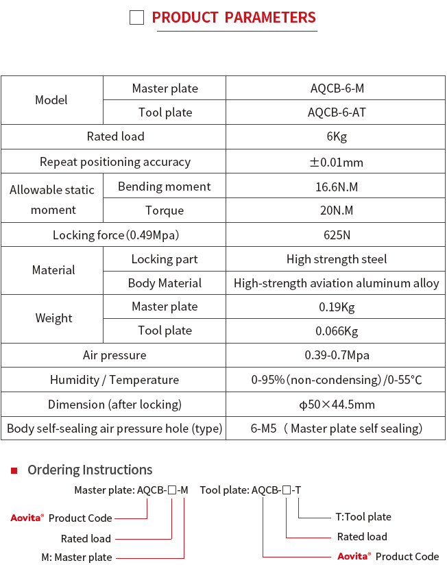 The quick-change function module provides access to media such as electricity, communications, compressed air, and hydraulic pressure for the robot execution tool, enabling simultaneous connection of supporting media when the main part of the quick-change is quickly connected.The following are the adaptation modules for AQC-6 robot tool quick change products: