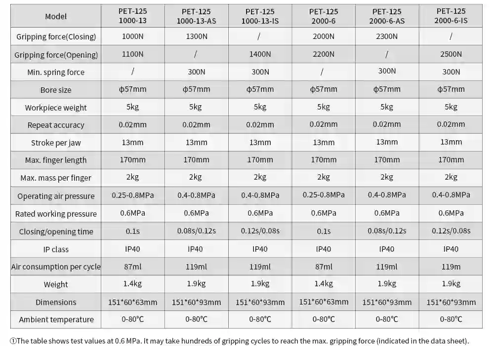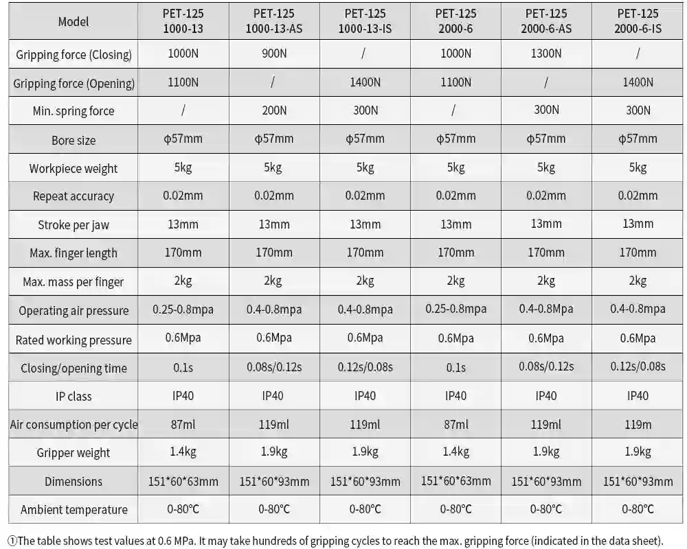 Gripping force (Closing):1000N/1300N