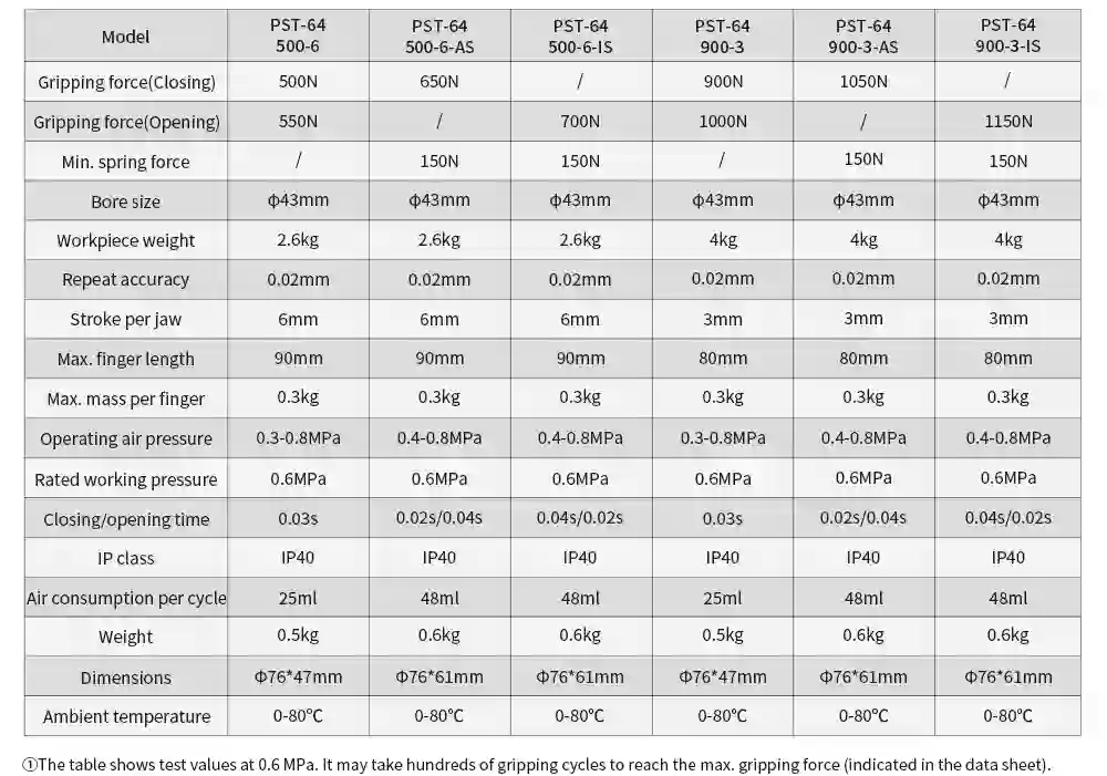Gripping force (Closing):500N/1050N