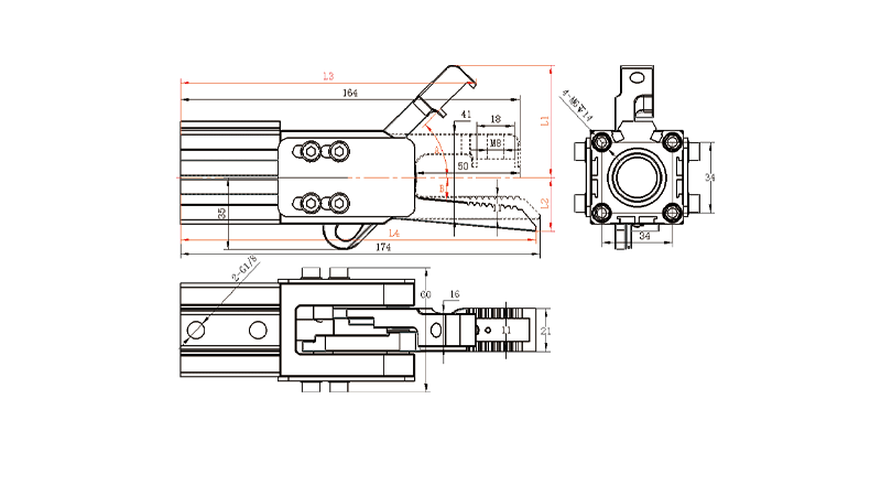 应用场景:平口加长夹钳,钳臂长,下钳臂薄,加持距离更远,适用于模具预留可加持空间小的情况