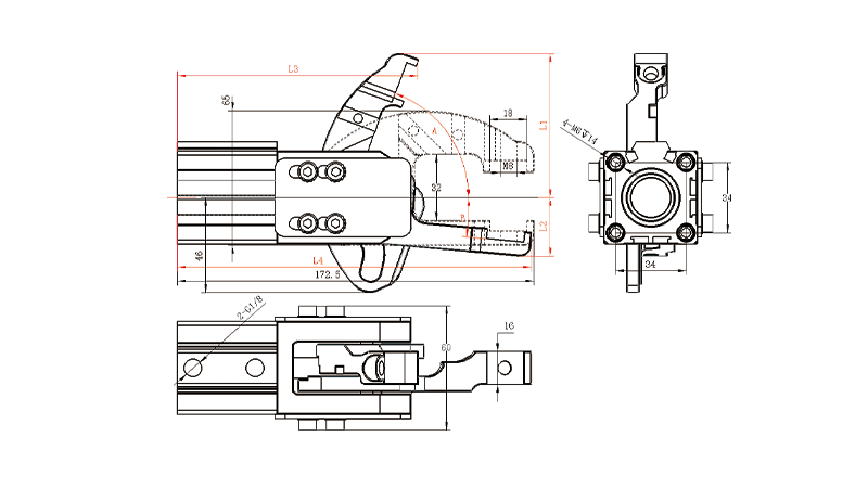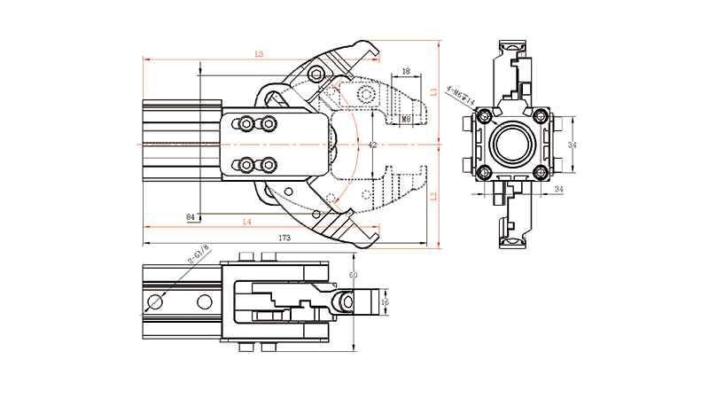 应用场景:平口加长夹钳,钳臂长,下钳臂薄,加持距离更远,适用于模具预留可加持空间小的情况
