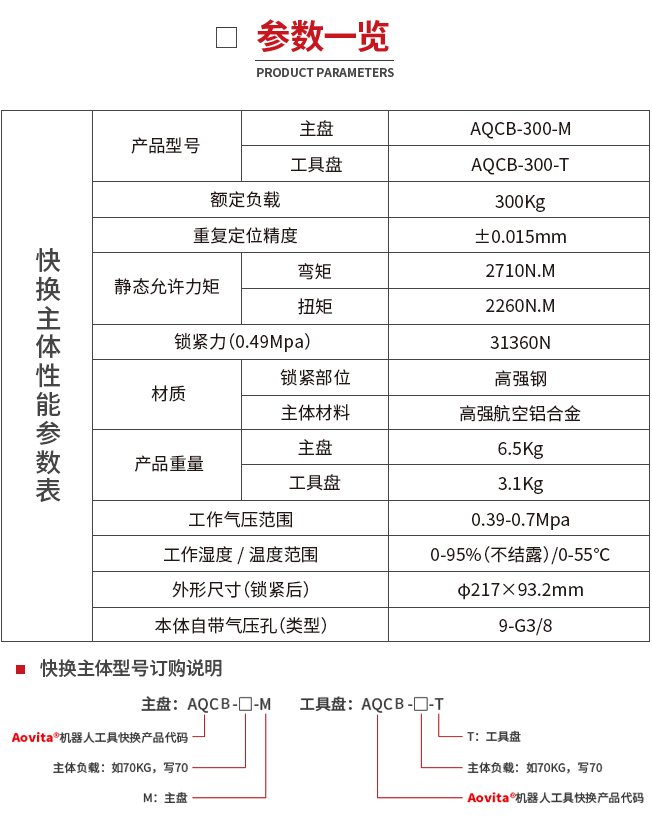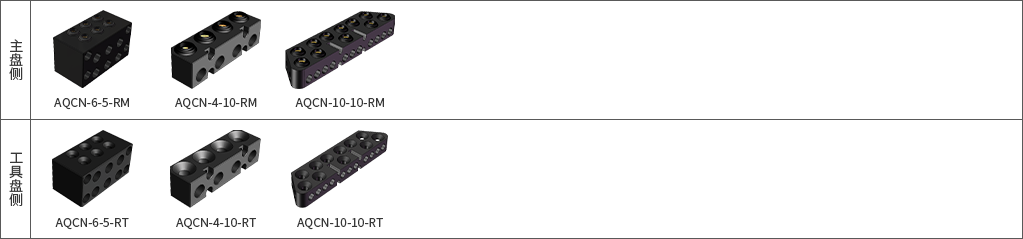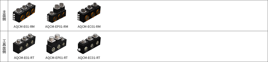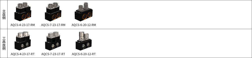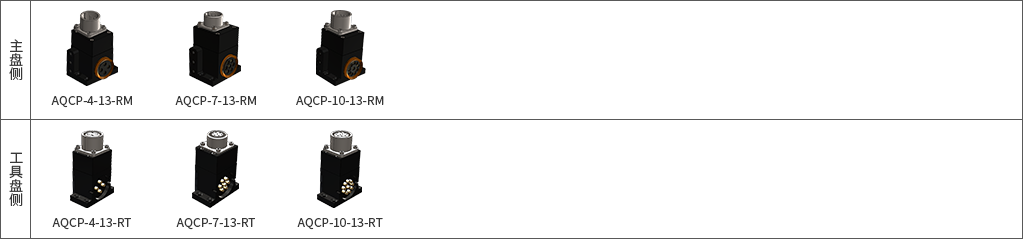 快换功能模块为机器人执行工具提供电力、通信、压缩空气、液压等介质的通路,实现在快换主体部分进行快速连接时,配套的电力、通信、压缩空气、液压同步连接。以下为AQC-300型机器人工具快换产品适配模块: