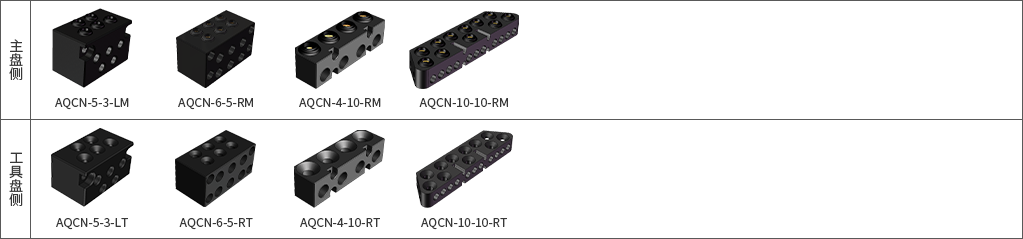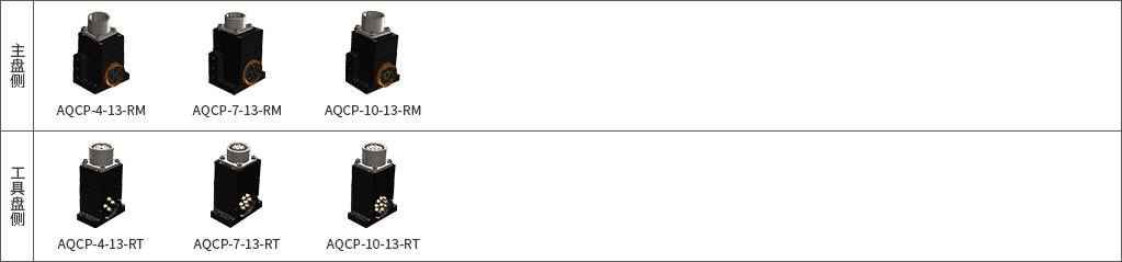 快换功能模块为机器人执行工具提供电力、通信、压缩空气、液压等介质的通路,实现在快换主体部分进行快速连接时,配套的电力、通信、压缩空气、液压同步连接。以下为AQC-40型机器人工具快换产品适配模块: