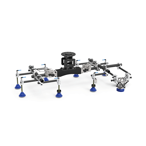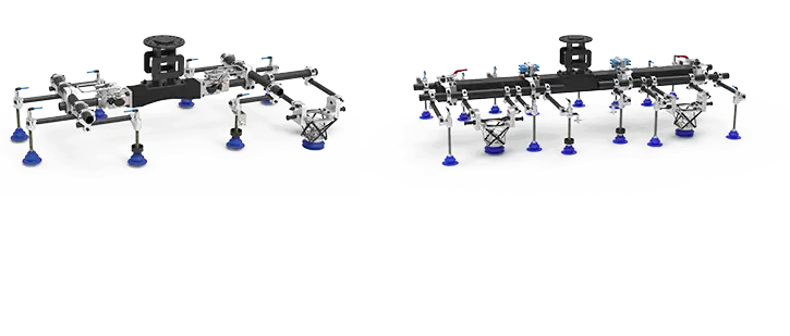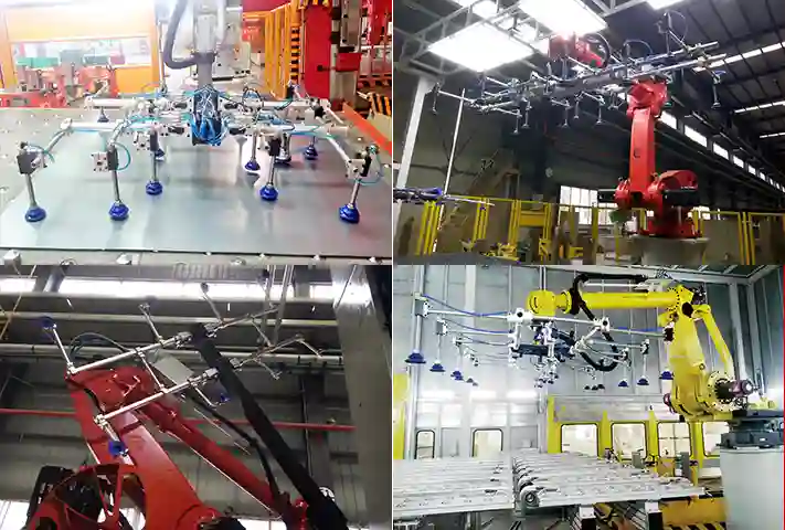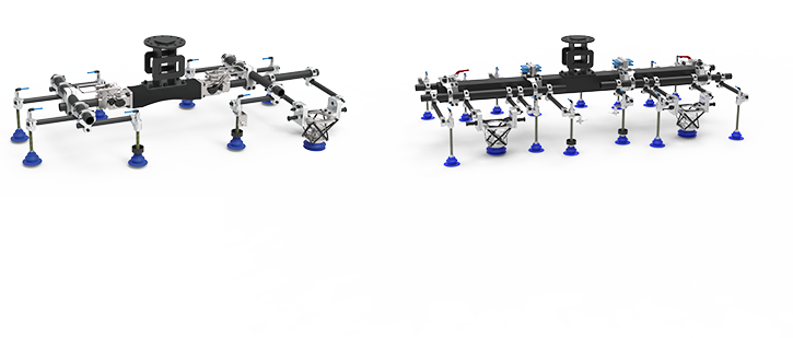 应用于冲压线首,采用真空抓取原理,从上料台车垛料上逐张抓取板料并送到下一工序。端拾器上通常集成双料检测传感器及防压传感器。Aovita®拆垛端拾器依据机器人、机械手加速度指标的要求,分为适用于高速应用的D系列产品和中低速应用的E系列产品。