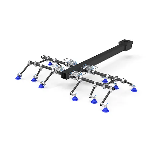 机器人上料|传输端拾器应用于中低速线间的工件搬运,异形或多孔工件可采用磁性吸盘抓取。