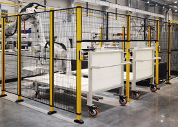 钢制围栏适用于仓储物流、设备防护、汽车、机器人及新能源生产线等环境。